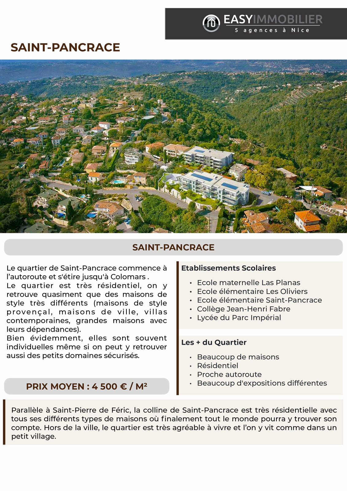 Parallèle à Saint-Pierre de Féric, la colline de Saint-Pancrace est très résidentielle avec tous ses différents types de maisons où finalement tout le monde pourra y trouver son compte. Hors de la ville, le quartier est très agréable à vivre et l’on y vit comme dans un petit village.